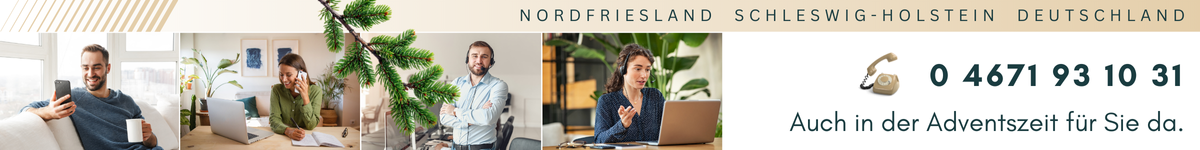 Unsere Wurzeln liegen in Nordfriesland und Schleswig-Holstein – eine Region, mit der wir tief verbunden sind und deren Werte uns prägen. Doch unsere Expertise kennt keine Grenzen: Wir betreuen Mandanten in ganz Deutschland und bringen unsere Kompetenz dorthin, wo Sie sie benötigen.